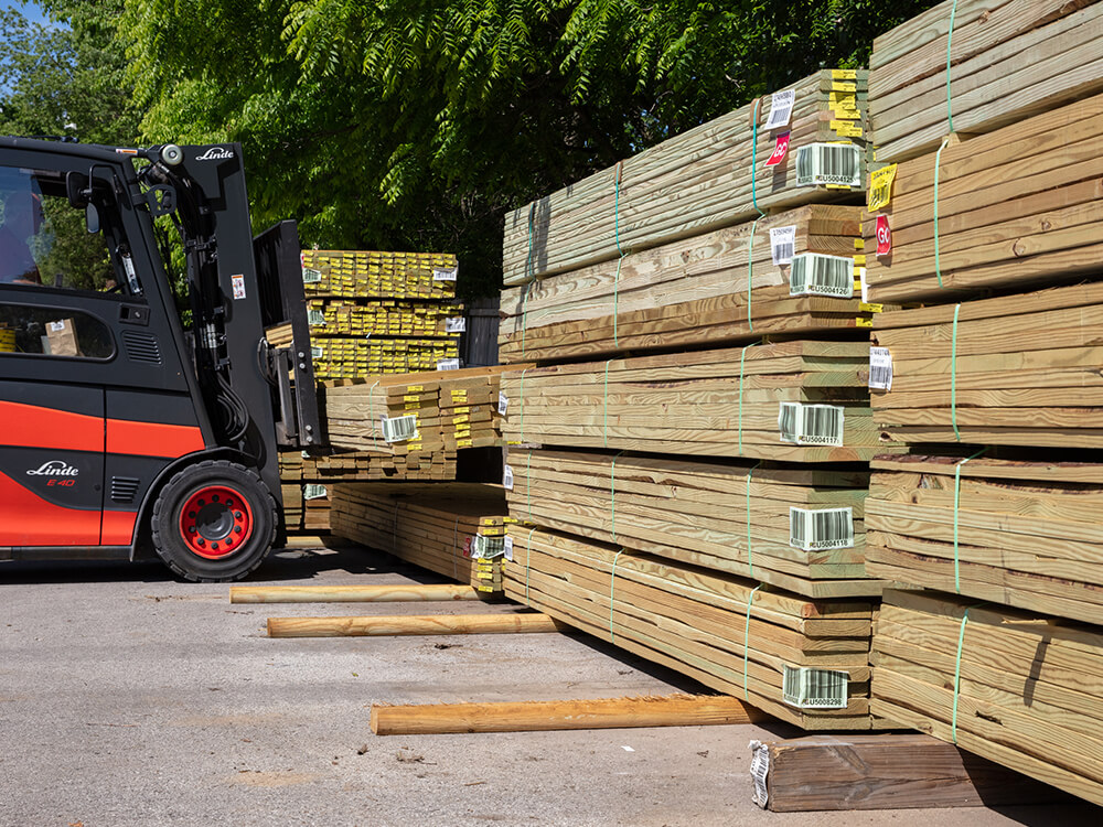 Our lumber yard stocks a complete selection of dimensional lumber for residential and commercial projects. Available in popular sizes — 2x4, 2x6, 2x8, 2x10, and 2x12 — our inventory includes both SPF (spruce-pine-fir) and southern yellow pine. We also carry long-length lumber up to 32 feet, perfect for rafters and structural applications.
